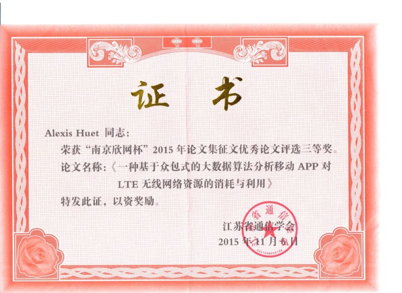 會議期間,評選出了以“互聯(lián)網(wǎng)+”為題材的優(yōu)秀科技論文,于此,華蘇科技 大數(shù)據(jù)產(chǎn)品部高級算法工程 師憑借其獨到的觀點和優(yōu)越的技術(shù)實力在“互聯(lián)網(wǎng)+”比賽中榮獲論文三等獎,題名為“一種基于眾包式的大數(shù)據(jù)算法分析移動APP對LTE無線網(wǎng)絡(luò)資源的消耗與利用”。