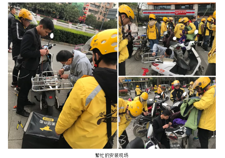 2019年3月25日,華蘇科技 旗下“螞蟻管車”品牌攜手成都美團外賣中心,在成都市龍泉區天立廣場舉行了集中安裝儀式。短短的一個小時內,調配到現場的100臺“螞蟻管車”防盜終端被美團外賣小哥們一領而光,幾個安裝師傅同時開工,馬不停蹄地完成了設備安裝、激活、綁定工作。