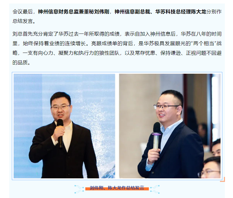 神州信息副總裁、華蘇科技總經理陳大龍,公司總經辦全體成員,各產品線、分子公司及職能單元負責人參會。