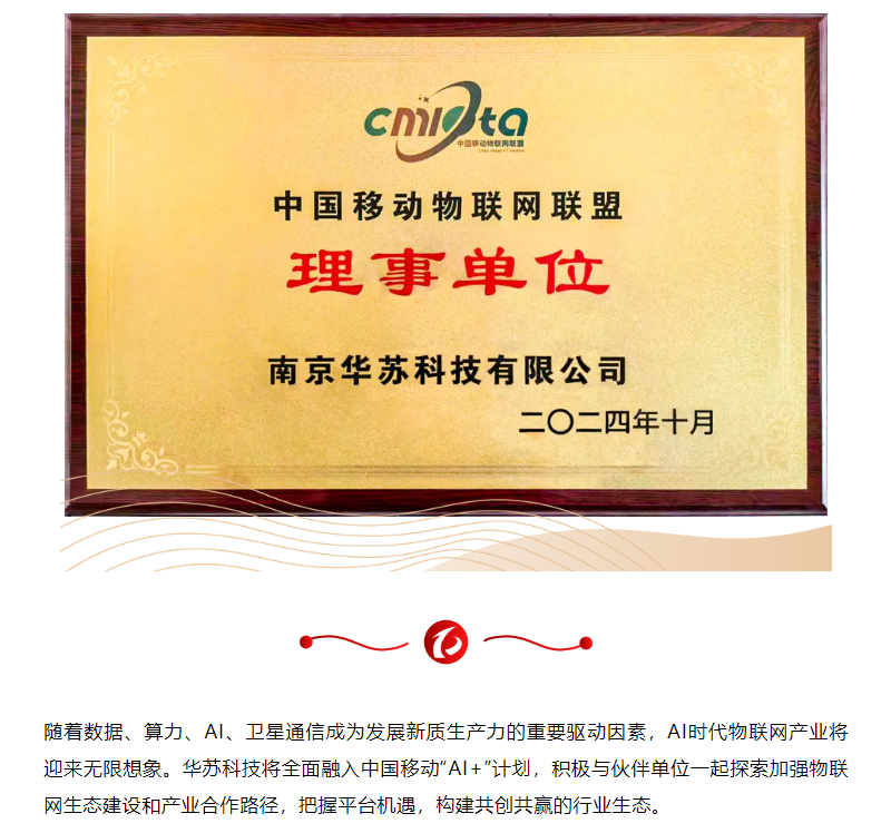 華蘇科技入選“中國移動物聯網聯盟理事單位”