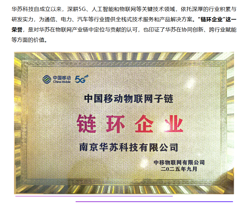 華蘇科技成為中移物聯網“鏈環企業”,攜手共促AIoT產業融通發展