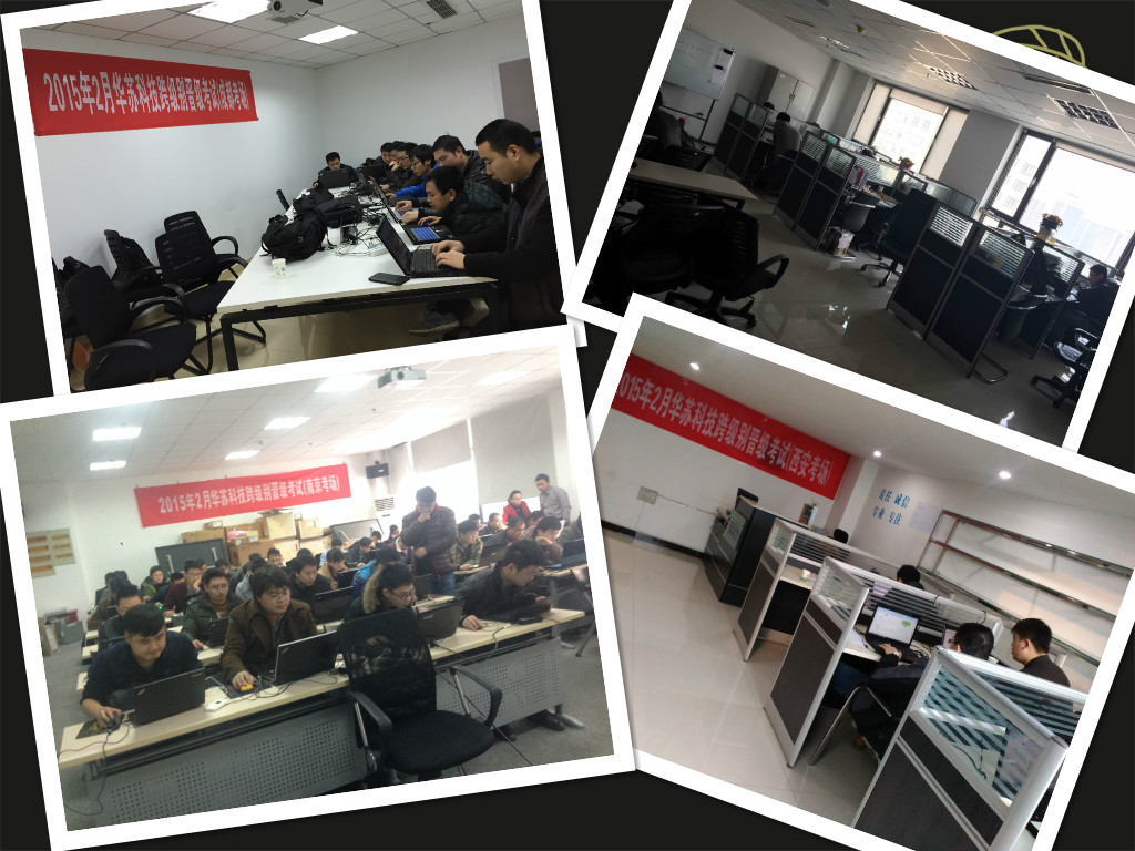 2015年2月14日,南京華蘇科技股份有限公司 組織了本年度第一次跨級別晉級考試,沈陽、南京、福州、西安、成都、濟南皆設有考點??荚嚪譃閮刹糠郑壕W考與面試,這既是公司對工程 師專業技能水平的一次考核,也是為優質服務打下堅定基石的前期準備。大家都全身心地投入到了考試當中。