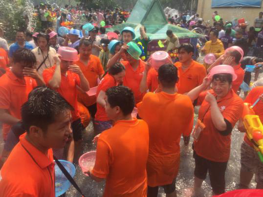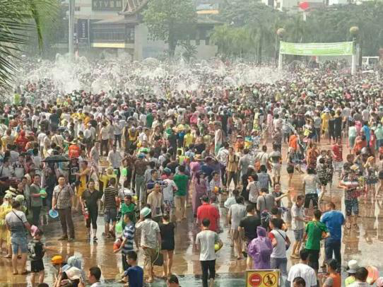 潑水廣場上更是人頭攢動,好不熱鬧!大家迫不及待地加入“混戰”,不需要有目標,潑出去總能逮著幾個。當地的風俗,被潑的越多代表你接受的祝福越多,大家互相潑水表示祝福并祈福風調雨順,五谷豐登。