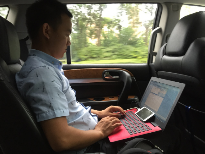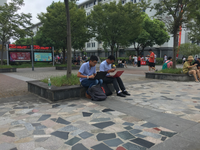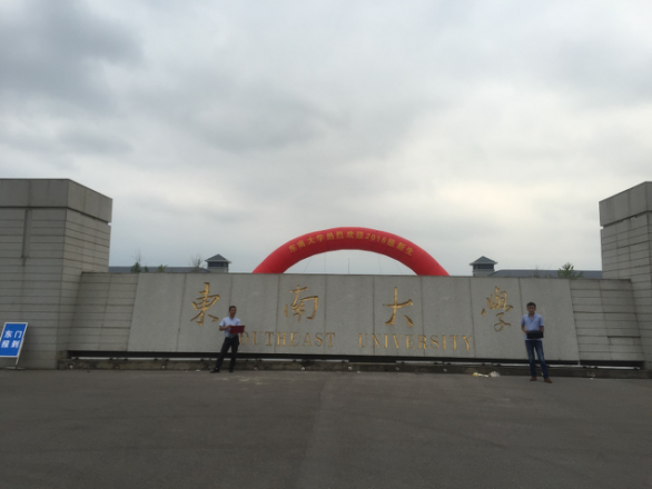 下午五點(diǎn)半左右,外場(chǎng)校園保障工作終于告一段落,他們和“東南大學(xué)”留影紀(jì)念后便匆匆趕回公司,開(kāi)會(huì)探討保障工作中發(fā)現(xiàn)的問(wèn)題并研究對(duì)策,以及明天的工作安排。趕回的途中,楊軍建說(shuō):“今天是陰天,時(shí)不時(shí)下點(diǎn)小雨,還是比較涼爽的。”樂(lè)呵呵的他,如此滿(mǎn)足。