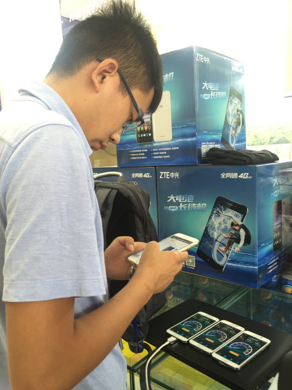 到達(dá)目的地,兩位外場(chǎng)測(cè)試工程師們便開(kāi)始了對(duì)偌大校園的徒步負(fù)重測(cè)試。兩人在聯(lián)通營(yíng)業(yè)點(diǎn)測(cè)試信號(hào)覆蓋,他們的測(cè)試任務(wù)是3個(gè)聯(lián)通營(yíng)業(yè)點(diǎn)、2個(gè)營(yíng)業(yè)廳、一輛應(yīng)急通信車(chē),上午、下午各測(cè)一遍,以確保最佳用戶(hù)感知。